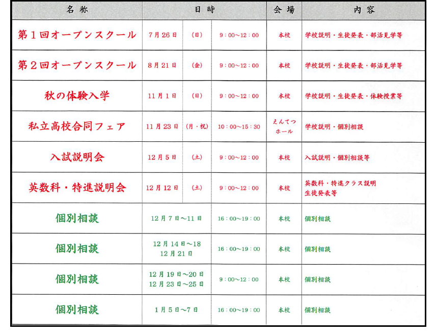 この時期になりますと、各私立高校によるオープンスクール情報が出そろいます。